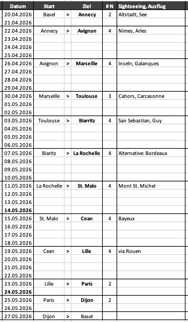 Wir haben die Vorbereitung der Rundreise in / um Frankreich für den Frühling 2026 begonnen: